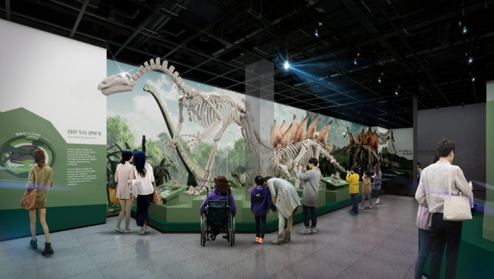 특히, 기존에 1전시실에 공룡테마관이 집중되어 있던 구성에서 벗어나 각각의 전시실마다 중생대 공룡의 생태를 보여줄 수 있도록 차별성을 부여하여 관람객들에게 새로운 신선함을 제공할 예정이다.