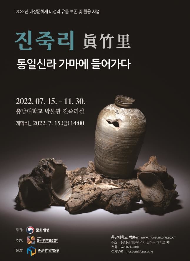 충남대 박물관에서는 등록·정리 작업을 마친 주름무늬병, 눌린병 등 유물 151점을 중심으로 통일신라시대 가마터 유적인 보령 진죽리 유적의 학술 가치를 조명하는 전시가 11월까지 열린다.