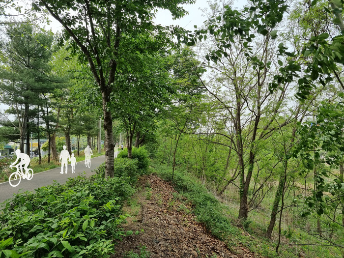 제방 사면에 2m 너비로 산책로를 만들고, 벤치와 전망대 등도 조성할 예정이다. 기존 자전거·보행자 겸용 도로는 자전거 전용 도로로 변경한다.