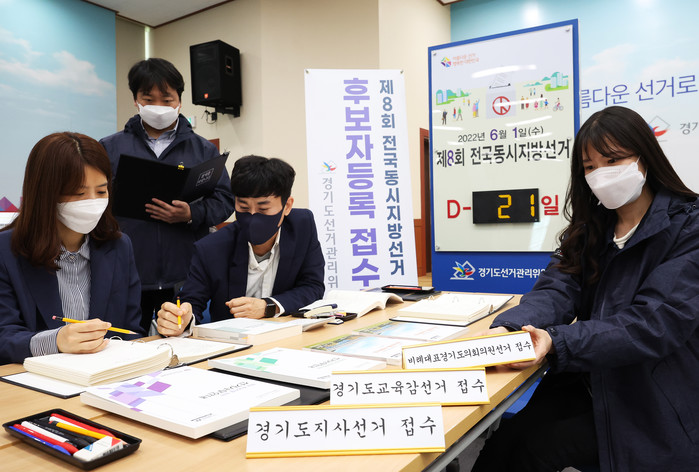 [열린의정뉴스 = 김윤영 기자] 제8회 전국동시지방선거 후보자 등록을 하루 앞둔 11일 오후 경기도 수원시 경기도선거관리위원회에서 관계자들이 후보자 등록 접수를 위한 준비작업을 하고 있다. 2022.5.11