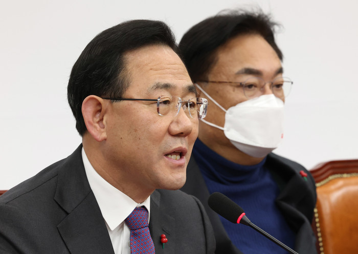 | ▲ 국민의힘 주호영 원내대표가 22일 오전 국회에서 열린 비상대책위원회의에서 발언하고 있다. 오른쪽은 정진석 비상대책위원장. 2022.12.22 |