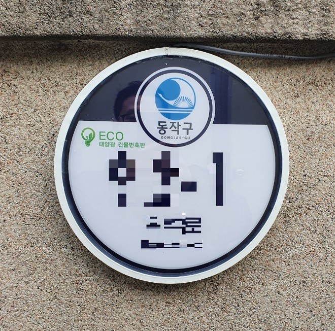 | ▲ 태양광LED 건물번호판 설치 예시 [출처=동작구청] |