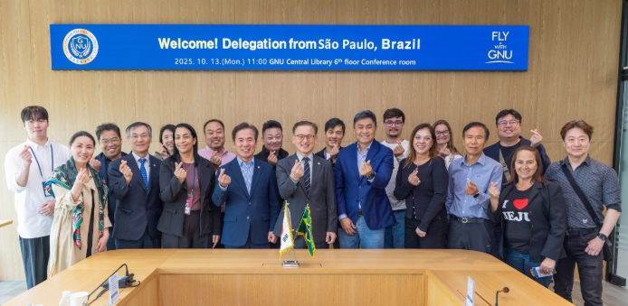 [코리아 이슈저널=김태훈 기자] 경상국립대학교는 브라질 상파울루시 대표단이 10월 13일 오전 경상국립대학교를 내방하여 권진회 총장을 예방하고 우주항공, 문화콘텐츠, 미디어 분야의 협력 방안을 논의했다고 밝혔다.
