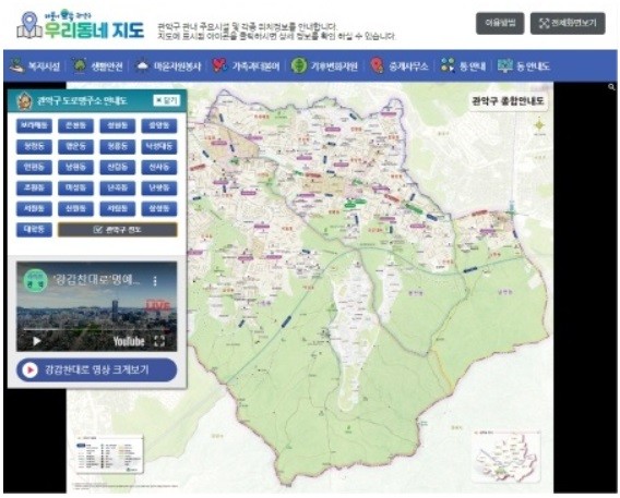 동 안내도 홈페이지에 드론으로 항공 촬영한 관악구 명예도로 강감찬대로 홍보영상도 게재해 주민에게 볼거리를 제공한다.