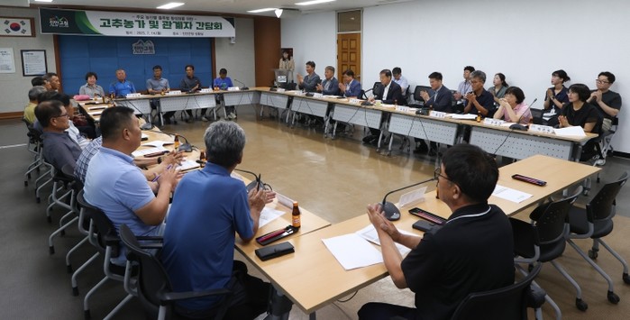 이번 간담회는 군 관계자를 비롯해 농협, 고추 재배 농가 등 약 30여 명이 참석해 현장의 생상한 목소리를 듣고 해결 방안을 함께 모색하는 뜻깊은 시간을 가졌다.