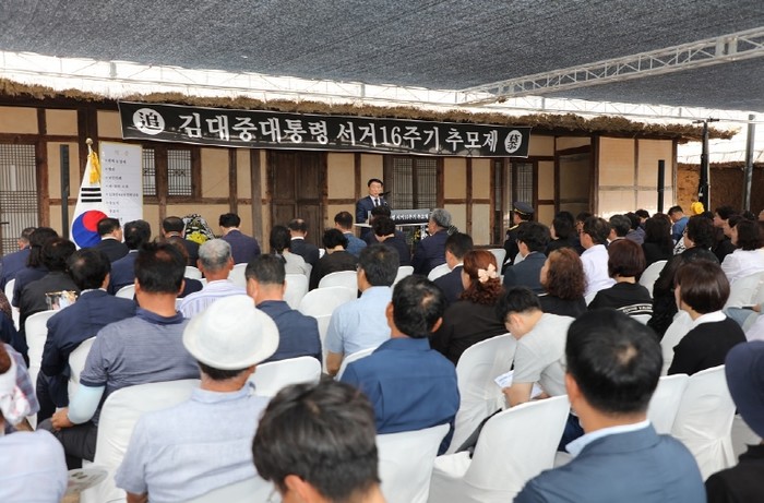 [코리아 이슈저널=김종오 기자] 신안군은 지난 8월 18일, 김대중 대통령 서거 16주기를 맞아 고향인 하의면 생가에서 추모제를 개최했다.