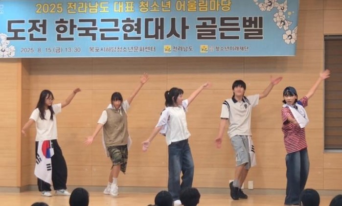 [코리아 이슈저널=김종오 기자] 전남 무안군 남악청소년문화의집 댄스동아리 ‘썬샤인’이 지난 15일 목포 하당청소년문화센터에서 열린 전라남도 대표 청소년어울림마당 '도전! 한국근현대사 골든벨' 행사에서 화려한 공연으로 눈길을 끌었다.