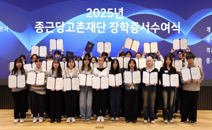 종근당고촌재단(이사장 정재정)이 지난달 28일 서울 충정로 종근당 본사에서 ‘2025년도 장학증서 수여식’을 개최했다.