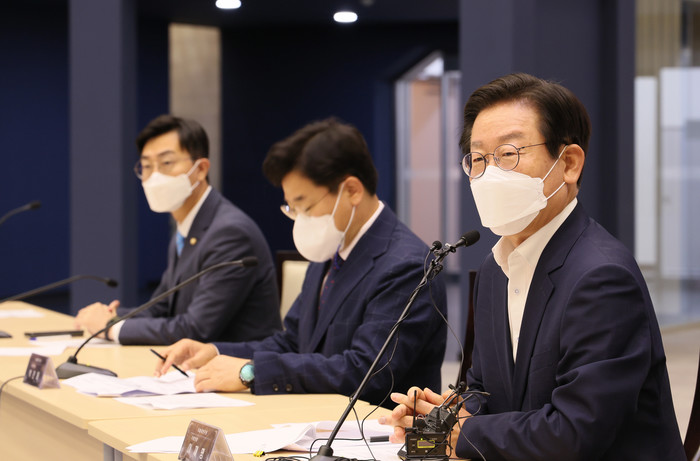 | ▲ 더불어민주당 차기 당 대표 선거에 출마한 이재명 의원이 25일 서울 여의도 한국거래소를 방문, 윤석열 대통령의 경제정책을 비판하는 발언을 하고 있다. 2022.7.25 [국회사진기자단] |
