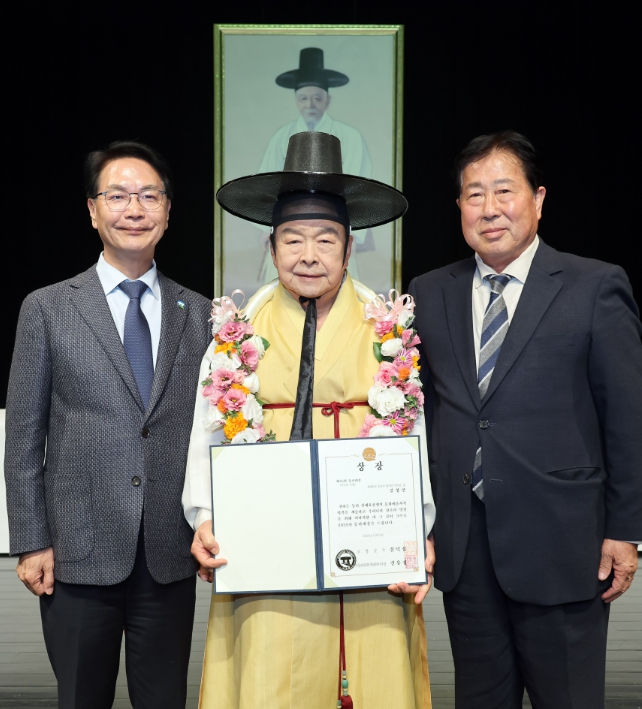 | ▲ ‘제35회 동리대상 시상식’ 김청만 명인(판소리 고법) 수상 |