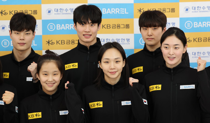 [열린의정뉴스 = 김윤영 기자] 수영 국가대표 황선우와 김서영 등 선수들이 9일 오후 인천국제공항 1터미널에서 제16회 FINA 쇼트코스(25m) 세계수영선수권대회에 출전하기 위해 출국하며 기념촬영을 하고 있다. 2022.12.9