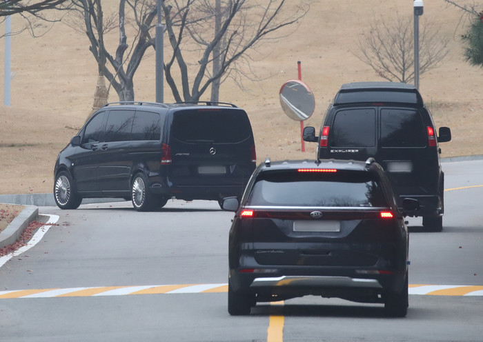 ▲ 삼성그룹 창업주인 호암 이병철 선대 회장의 34주기 추도식이 열린 19일 오전 홍라희 전 리움미술관장 등 삼성가 일행이 탑승한 차량이 경기도 용인시 호암미술관 인근 선영으로 들어가고 있다. 호암의 손자이자 현 삼성 총수인 이재용 삼성전자 부회장은 미국 출장 일정으로 이날 추도식에는 참석하지 않는다. 2021.11.19 [연합뉴스 제공]