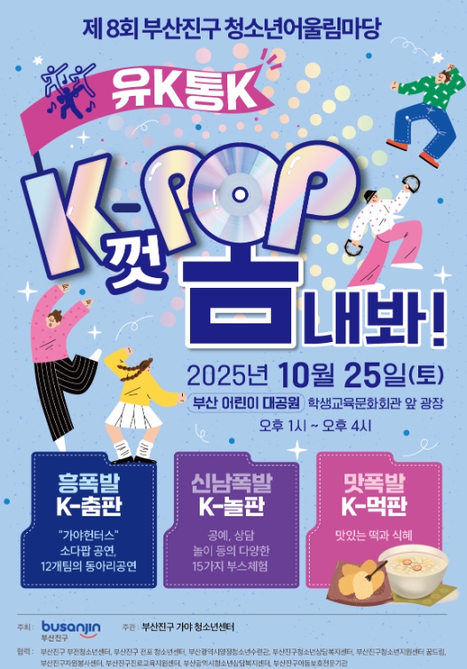 [코리아 이슈저널=김태훈 기자] 부산진구는 2025년 청소년어울림마당 행사로 ‘K껏 뽐[POP]내봐’라는 주제로 오는 10월 25일 오후 1시 부산 어린이대공원에서 개최한다고 밝혔다.