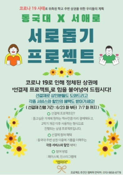 장기간 지속할 수익 감소로 인해 어려움을 겪자 서애로 상권을 살리기 위해 동국대 구성원들이 힘을 모은 것이다.