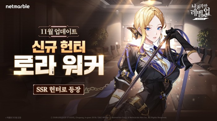 신규 헌터 ‘로라 워커’는 명속성 메이지로, 채찍을 활용한 화려하고 역동적인 전투 스타일이 특징이다. 스킬 구성은 ▶번개 표범을 소환해 적을 공격하는 ‘체크 포인트’ ▶연속 채찍 공격 스킬 ‘태스크 루프’ ▶거대 번개 표범을 소환하는 궁극기 ‘에이펙스 벤전스’로 구성돼 전략적 활용도가 높다.