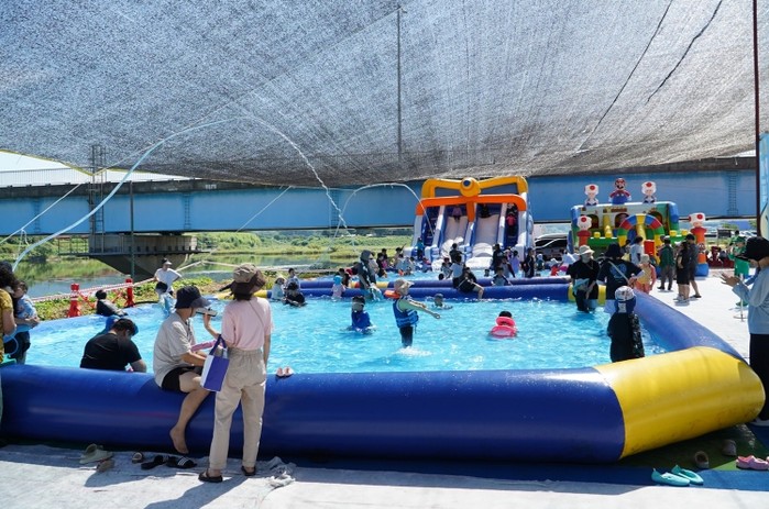 행사장은 대형 물놀이 풀장과 워터슬라이드, 에어바운스 등으로 구성한 워터파크존을 중심으로 아이부터 어른까지 누구나 즐길 수 있는 놀이공간으로 꾸몄으며 가족 단위 방문객이 머무를 수 있도록 그늘막과 휴식 공간도 함께 마련했다.