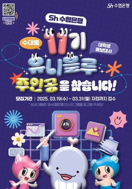 Sh수협은행(은행장 신학기)이 ‘Sh수협은행 대학생 홍보대사 유니블루 11기’ 단원을 모집한다.
