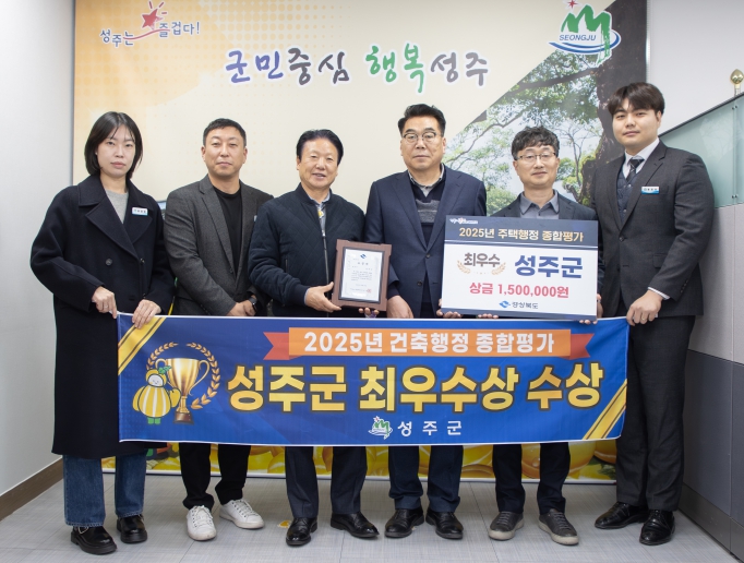 [코리아 이슈저널=김태훈 기자] 성주군이 경상북도 2025년도 경상북도 주택행정종합평가에서 최우수상을 수상하며 주택‧건축행정 전반에서 우수한 행정역량을 다시 한번 입증했다.