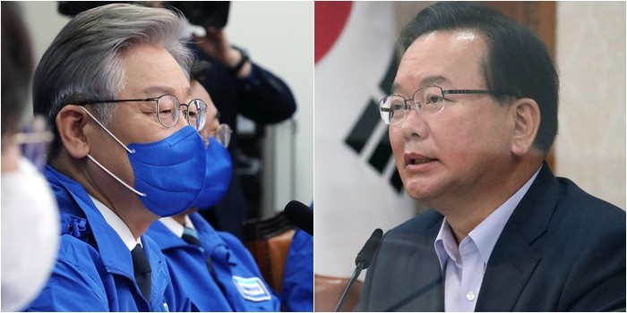 이 후보가 재난지원금의 필요성을 거듭 강조하는 가운데 김부겸 국무총리가 공개적으로 거부의 뜻을 밝히면서, 여당 대선 후보와 국무총리가 정면으로 대립하는 모습이 연출되면서다.