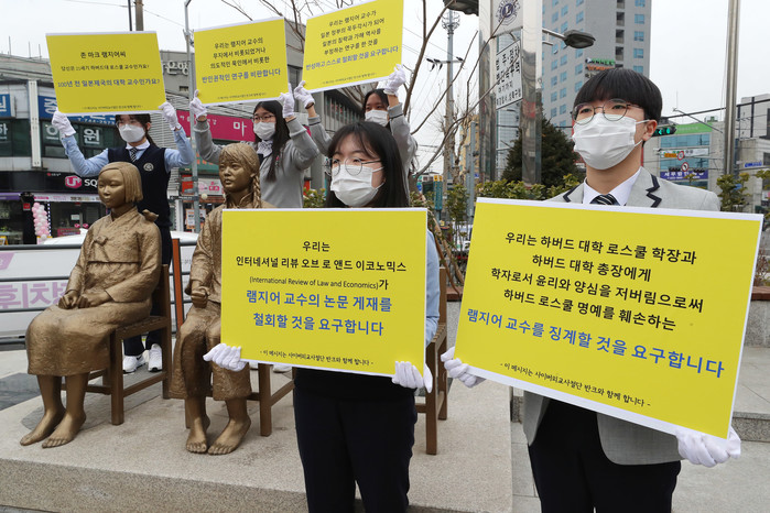 | ▲ 지난 2월 25일 열린 램지어 교수 규탄 집회 사진은 기사와 직접적 관계없음. [연합뉴스 자료사진. 재판매 및 DB 금지] |