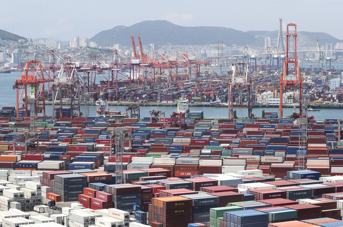 | ▲ 1일 오전 부산항 신선대와 감만부두에서 컨테이너 하역작업이 진행되고 있다. 우리나라의 올해 상반기 무역적자가 100억 달러를 웃돌며 상반기 기준 역대 최대 규모를 기록한 것으로 나타났다. 산업통상자원부는 이 같은 내용의 상반기 수출입 통계를 1일 발표했다. 상반기 수출은 지난해 동기보다 15.6% 증가한 3천503억 달러, 수입은 26.2% 늘어난 3천606억 달러였다. 상반기 교역액은 20.7% 증가한 7천110억 달러다. 이에 따라 무역수지는 103억 달러(약 13조 원) 적자를 기록했다. 2022.7.1 |
