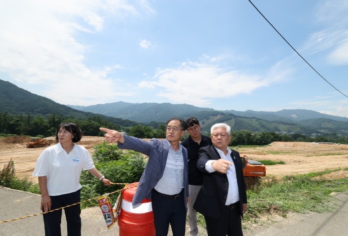 현장에는 총사업비 95억 원이 투입돼 2026년까지 용수·전기·통신·도로 등 스마트팜 운영을 위한 핵심 기반 인프라 시설이 구축될 예정으로, 황 군수는 이날 공사 진행과 안전 및 온열질환 예방, 스마트팜 적용 계획, 그리고 향후 운영 방안 등을 촘촘하게 확인했다.