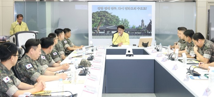 우범기 시장은 12일 시청 8층 재난상황실에서 전주시 관할 예비군 지휘관과 간담회를 열고 지역 안보태세와 협력방안을 논의했다.
