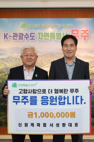 [코리아 이슈저널=김종오 기자] 신원케미칼 서성환 대표가 지난 9일 무주군에 고향사랑기부금 1백만 원을 기탁했다.