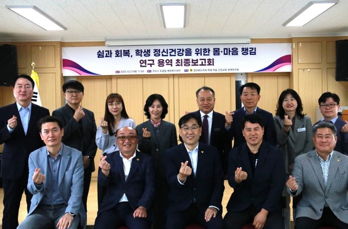 [코리아 이슈저널=김태훈 기자] 경북도의회 의원연구모임인'경상북도 학생 마음건강 교육 정책연구회'(대표 황두영 의원)는 10월 21일 구미시 도량동 행정복지센터에서 ‘쉼과 회복, 학생 정신건강을 위한 몸·마음 챙김 연구용역’ 최종보고회를 개최했다.