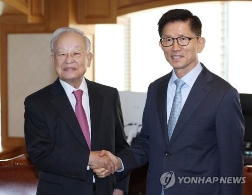 | ▲ 김문수 경제사회노동위원장(오른쪽)이 13일 오전 서울 마포구 한국경영자총협회(경총)를 방문해 손경식 회장과 인사하고 있다. 2022.10.13 |
