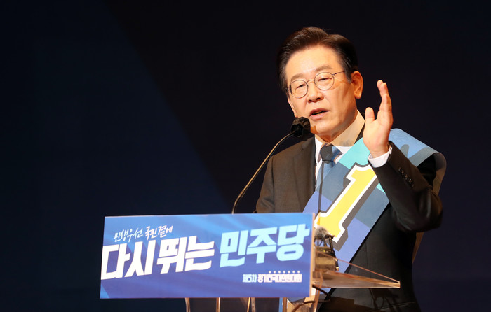 | ▲ 이재명 더불어민주당 당 대표 후보가 14일 충북 청주시 CJB 컨벤션센터에서 열린 더불어민주당 당 대표·최고위원 후보 합동연설회에서 당원들에게 지지를 호소하고 있다. 2022.8.14 |
