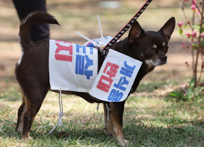 | ▲ 4일 오전 경기도 성남시청 앞에서 1500만반려인 주최로 열린 '모란 개시장 완전 철폐 촉구 집회'에 반려견들이 참석해 있다. 2022.5.4 |