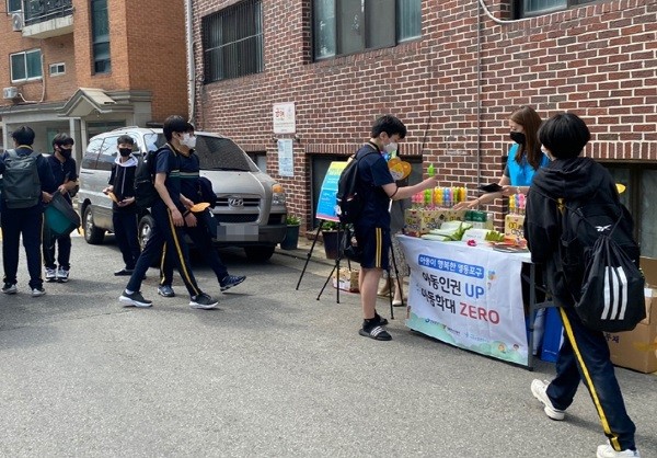 5월 26일 수요일에는 영등포본동에 위치한 영원중학교에서 학생과 학부모가 많이 모이는 하교시간인 오후 2시부터 3시 반까지 학교 정문 앞에서 캠페인을 진행했다.
