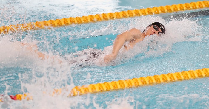 [열린의정뉴스 = 김윤영 기자] '한국 수영의 희망' 황선우(강원도청)가 25일 경북 김천실내수영장에서 열린 2022 경영·다이빙 국가대표 선발전 남자 일반부 자유형 100m 예선에서 역영하고 있다. 'KB금융 코리아 스위밍 챔피언십'이라는 이름으로 개최되는 이번 대회는 오는 9월 항저우 아시안게임에 태극마크를 달고 나설 국가대표를 뽑는 자리다. 2022.3.25