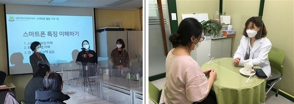 | ▲ 성동구 정신건강센터의 중증질환자 대상 스마트 기기교육 및 전문의 상담 모습[출처=성동구청] |