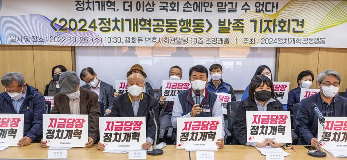 공동행동은 26일 서울 종로구 변호사회관에서 기자회견을 열어 조직을 재정비해 690개 단체가 참여하는 '2024 정치개혁공동행동'으로 재발족한다고 밝혔다.