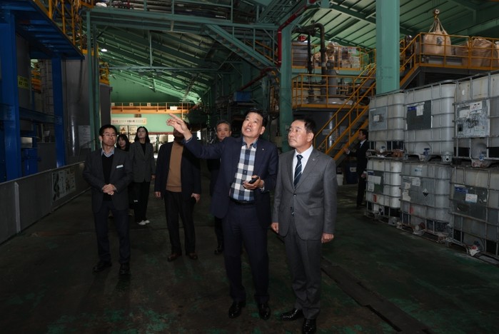 이날 송 군수는 생산 현장과 공정 설비를 둘러보며 기업 운영 실태를 점검하고, 근로자들과 소통하는 시간을 가졌다.