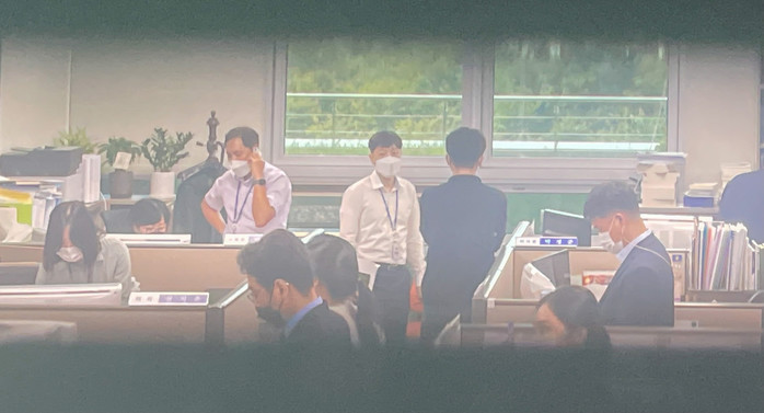 지도부는 어떠한 혐의로 압수수색이 이뤄졌는지 적시된 압수수색 영장을 제시하라고 요구했다. 이 과정에서 고성이 오가기도 했다.