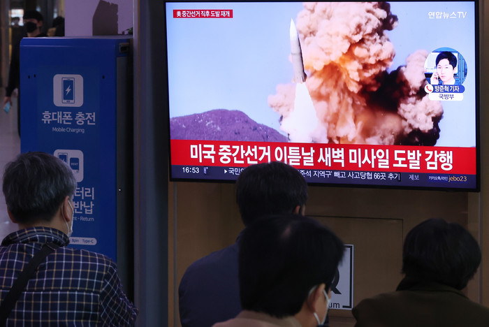 | ▲ 북한이 동해상으로 미상의 탄도미사일을 발사했다고 합동참모본부가 밝힌 9일 오후 서울역 대합실에서 시민들이 관련 뉴스를 보고 있다. 북한은 한미 연합공중훈련 '비질런트 스톰'(Vigilant Storm) 중이던 지난 2∼5일 미사일 약 35발을 발사한 뒤 나흘 만에 다시 탄도미사일 도발에 나섰다. 2022.11.9 |