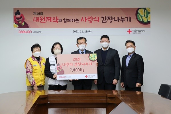 전달식에는 대원제약 최태홍 사장을 비롯해 대한적십자사 서울특별시지사 중앙봉사관 이현숙 관장, 성동구청 김준곤 행정관리국장 등이 참석했으며, 대원제약은 총 7,400kg의 김치를 기부했다. 대한적십자사는 기증받은 김치를 성동구 내 취약 계층 530세대에 전달할 예정이다.