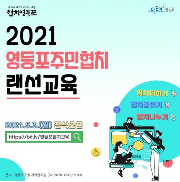 [열린의정뉴스 = 김진성 기자] 영등포구(구청장 채현일)는 협치영등포의 온라인 교육프로그램을 한 곳에 모은 플랫폼 ‘2021 영등포 주민협치 랜선교육’ 사이트를 오픈하고 민‧관협치 역량 강화에 힘쓰고 있다고 밝혔다.