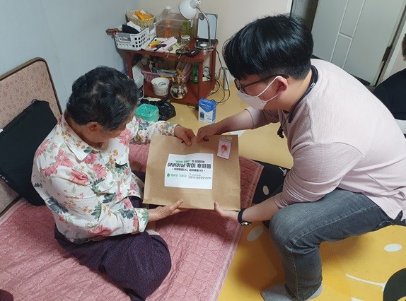 이 외에도 네이버 해피빈, 본페뜨 은평점, 한화생명의 후원을 통해 선물세트(카네이션, 누룽지, 건빵, 김, 야채죽, 한우곰탕 등)를 총 350명의 어르신 가정에 직접 방문하여 전달해 드렸으며, 코로나19로 인해 어려움을 겪고 있는 어르신들의 안전확인과 정서지원도 함께 진행했다.