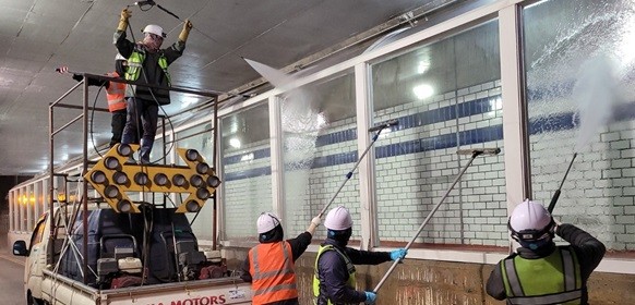 이번 세척작업은 지역에 위치한 지하보차도 6개소, 보도육교 6개소, 방음벽 2개소 등 총 14개소를 대상으로 실시돼 제설재와 매연, 연기 등으로 오염된 시설물의 묵은 때를 말끔히 씻어냈다.