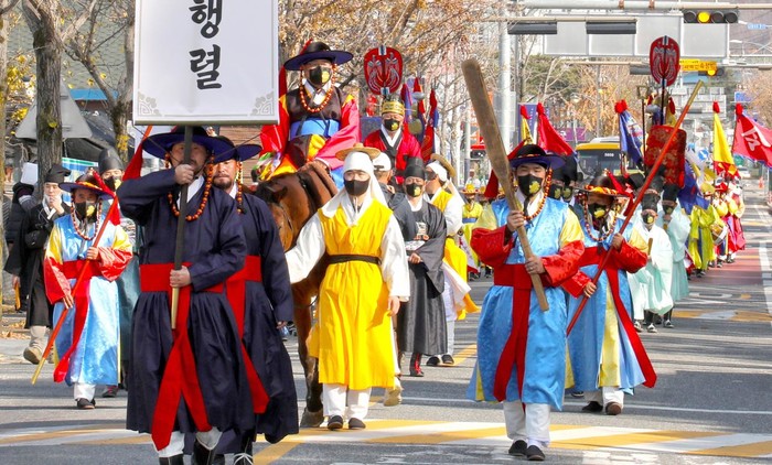 22일 무주군과 무주문화원에 따르면 이안행렬 재연행사를 제26회 반딧불축제 기간인 다음 달 3일 오후 2시부터 읍내 일원에서 연다. 사진은 조선왕조실록 이안행렬 재연행사. 2022.8.22 [무주군 제공. 재판매 및 DB 금지]