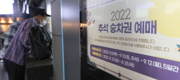 SR은 25일까지 사흘간 온라인·전화로 추석 승차권을 예약 판매하며 내일은 경로 및 장애인 우선 예매, 24일과 25일은 전 고객을 대상으로 예매를 진행한다. 2022.8.22