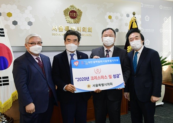 [열린의정뉴스 = 김진성 기자] 김인호 서울시의회 의장은 30일 대한결핵협회 서울특별시지부 성하삼 회장과 문혜동 지역본부장을 만나 2020년도 크리스마스 씰을 전달받고 결핵예방 및 퇴치사업을 위한 특별성금을 전달했다.
