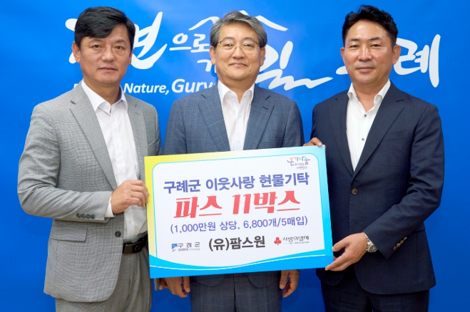 이번 (유)팜스원의 기탁은 단순한 물품 지원을 넘어 지역사회 신뢰와 공동체 의식을 높이는 계기가 될 것이며, 구례군은 앞으로도 민·관 협력을 통해 복지 수혜 사각지대를 줄이고, 군민 모두가 따뜻한 일상을 누릴 수 있도록 최선을 다할 것으로 밝혔다.