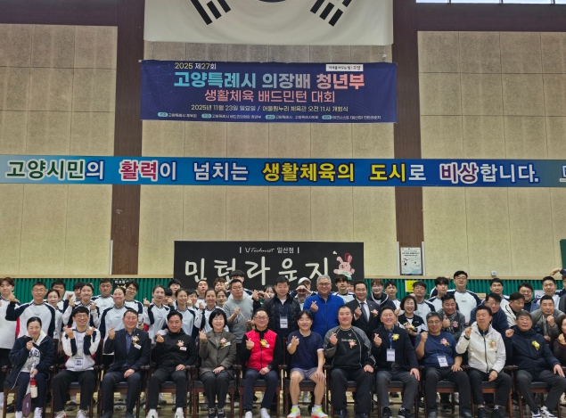 [코리아 이슈저널=홍춘표 기자] 제27회 고양특례시의회 의장배 청년부 배드민턴대회가 11월 23일 고양어울림누리 체육관에서 성황리에 마무리됐다. 이번 대회는 고양특례시 체육회가 주최하고 고양특례시 배드민턴협회가 주관한 가운데, 지역 청년부 배드민턴 동호인과 시민들이 한자리에 모여 스포츠를 통한 소통과 건강 증진의 기회를 나누는 자리로 치러졌다.