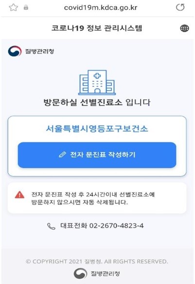 채현일 영등포구청장은 “전자문진 도입으로 검사 대기 시간이 단축되고 행정절차를 간소화해 불필요한 비용을 줄일 수 있을 것”이라며, “구민 편의 증진과 코로나19 확산 방지라는 두 마리 토끼를 잡기 위해 최선을 다하겠다”고 전했다.