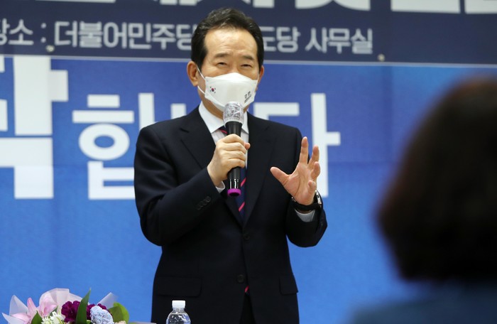 정 전 총리는 이날 오전 민주당 도당에서 가진 지지자 등과의 간담회에서 "전부터 윤석열씨는 후보가 될 일도 없고, 대통령이 될 리가 없다고 말해 왔는데 어제부로 확실해졌다"며 "대선판이 크게 바뀌고 있다"고 윤 전 총장을 저격했다.